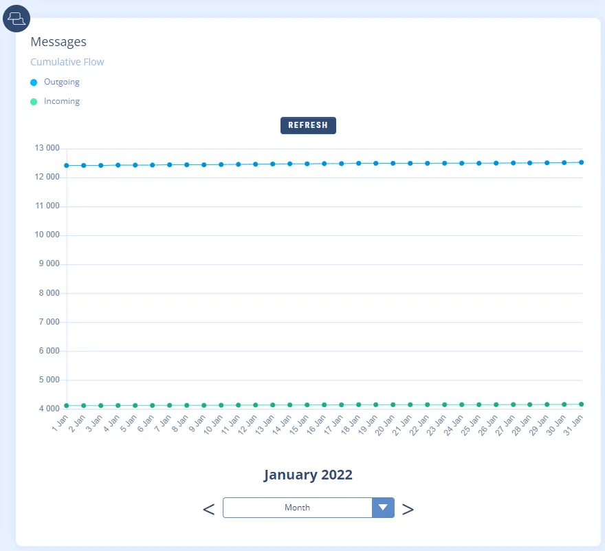 The cumulative total is visible from the dashboard on the cartridge of your chatbot.