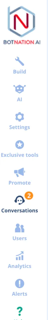 When a transfer to the human is required by the user, you will receive an email and also a notification in your Botnation space. This notification is materialized by a small number in orange showing the number of conversations to be processed.