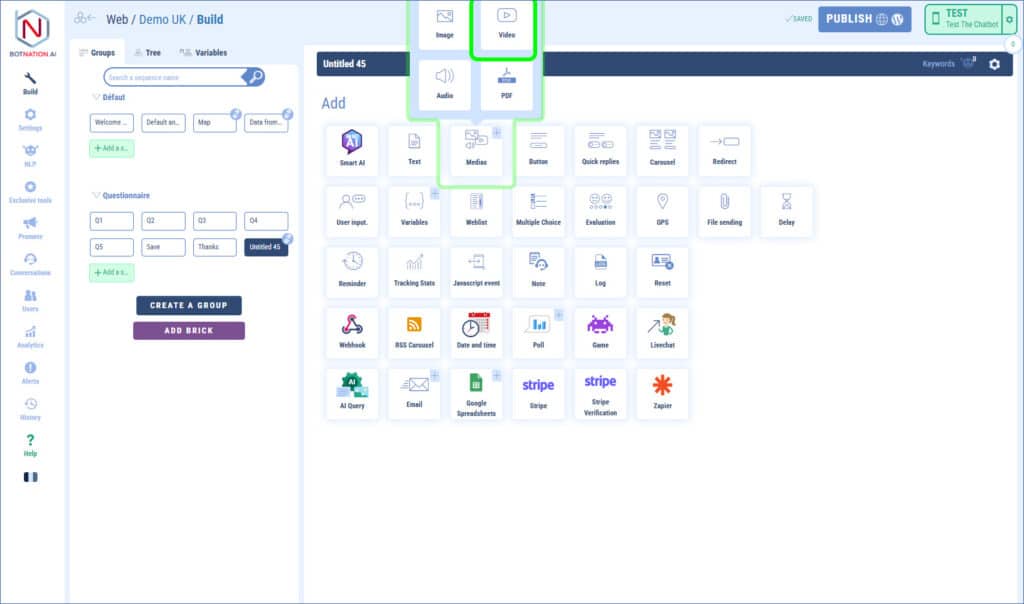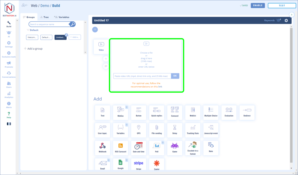 Easily add a video that will be displayed by your chatbot.