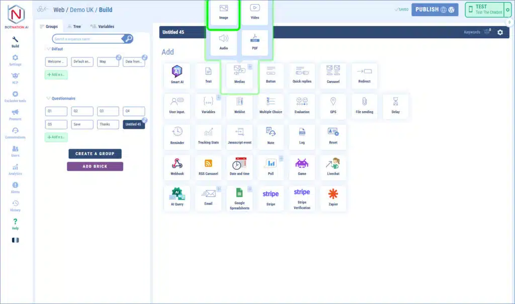 Among the construction features, click on “Media” and then, in the menu that opens, click on “Image”.