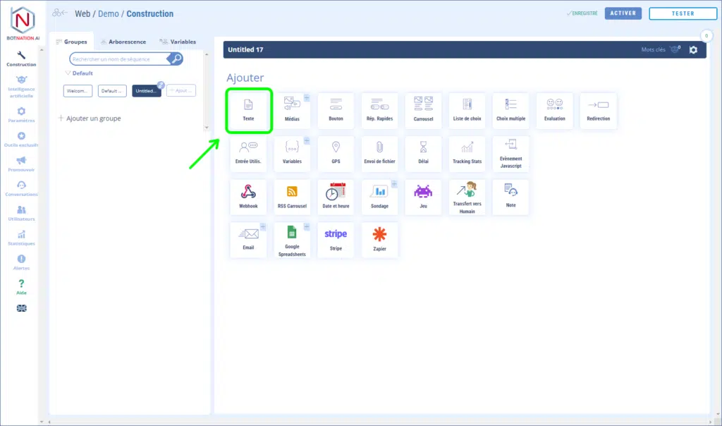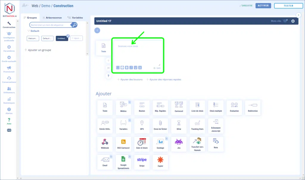 If your text exceeds the 640-character limit, simply split your text into several paragraphs and add them to your chatbot using several Text Features in succession.