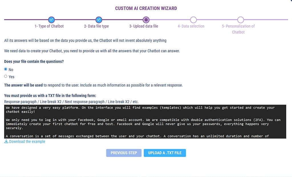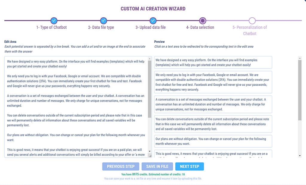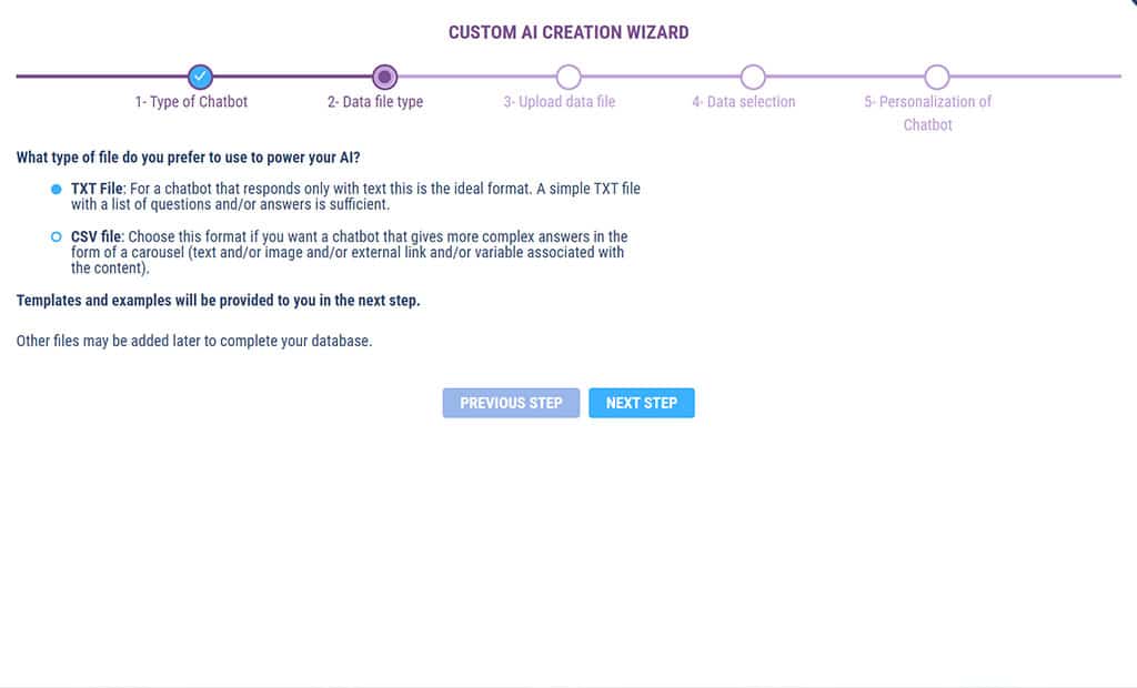 For FAQ chatbots, we offer 2 file types to feed your personalized AI: