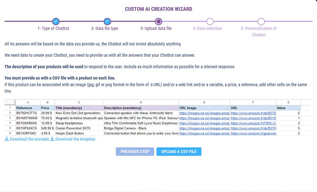 The CSV file must be formatted so that SMART AI can understand it.