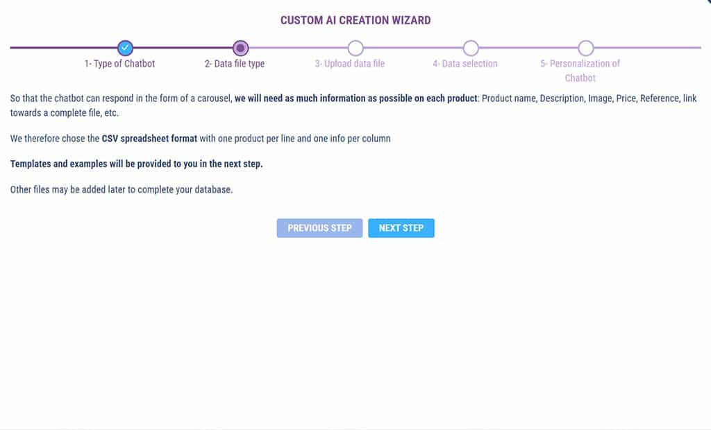 If you want to associate an image and/or a button with the chatbot’s response, choose the CSV format.