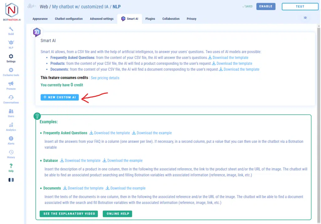 Modify your custom AI with SMART AI from Botnation