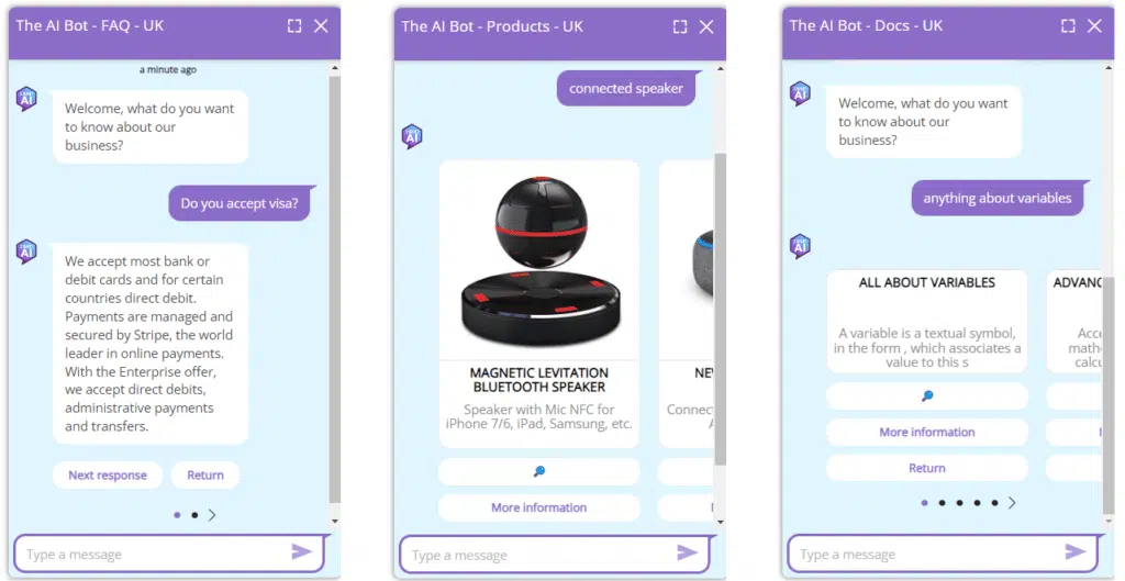 If you have chosen the carousel display type, you will also have this option. This allows you to propose a button giving details of the answer. This is particularly handy for getting more info on a product without leaving the chatbot.