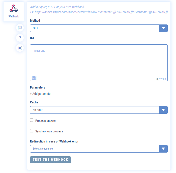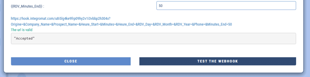 The button “Test the Webhook” allows you to make a call to the url you have entered to check that it works properly.