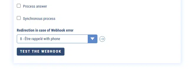 If your Webhook does not respond or returns an error, the user will be redirected to the redirection sequence you have chosen.