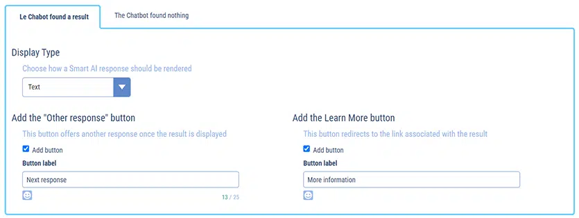 Chatbot behavior tab settings“The chatbot has found a result“: