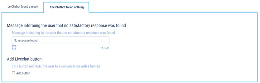 Chatbot behavior tab settings“The chatbot hasn’t found anything“: