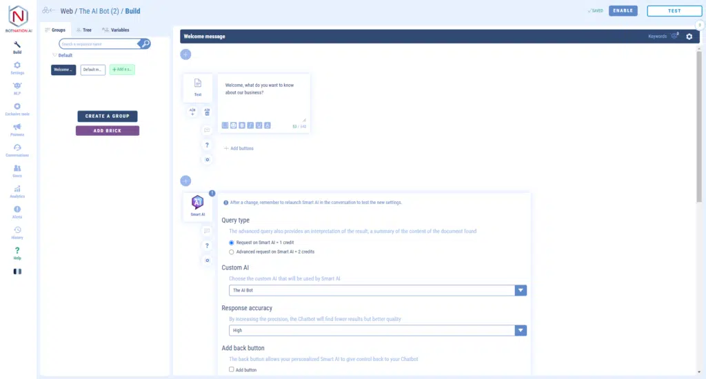 And voila, as promised, in just a few minutes, you have an operational chatbot with AI customized from your data thanks to SMART AI from Botnation.
