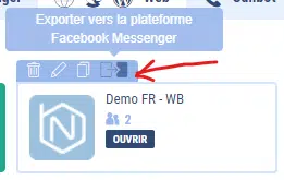 Cette fonctionnalité n’a pas d’équivalent sur Facebook Messenger. Il vous faudra donc adapter le contenu en utilisant d’autres fonctionnalités comme les Réponses Rapides.