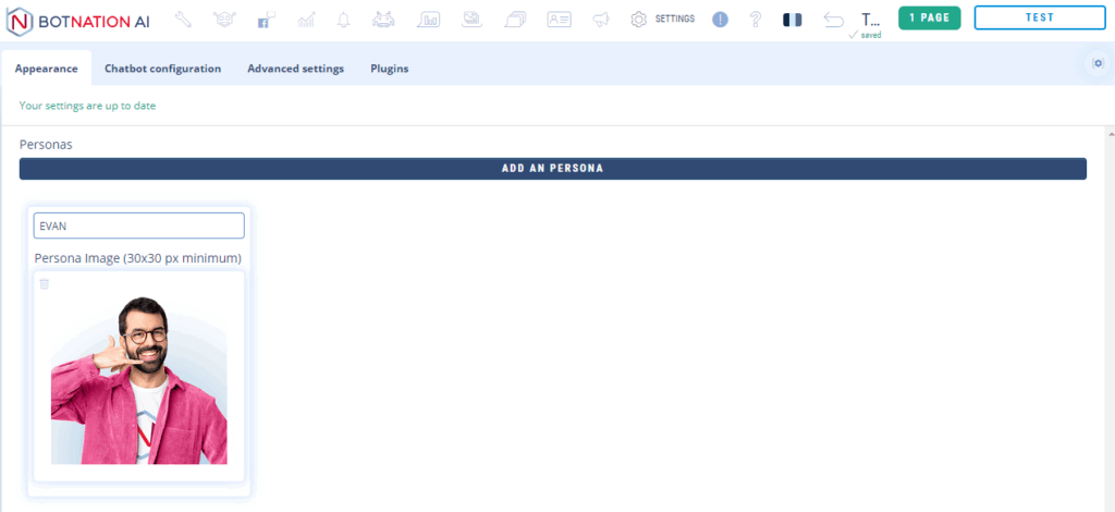IMPORTANT: You will not see the persona changes during your tests. You will only be able to see them when your chatbot is published on a Facebook page.