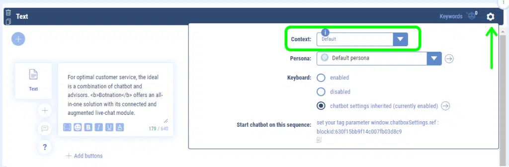 The development of your chatbots will become more complex, that’s why we advise you to activate the contexts only for bots with depth and an important use of NLP, but they will be more relevant and efficient!