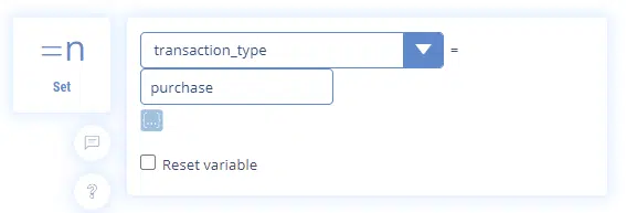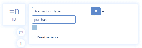 And we use the intermediate sequence to store the information by assigning the value “purchase” to the variable “transaction_type”.