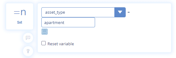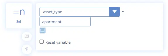 And we use the intermediate sequence to store the information by assigning the value “apartment” to the variable “asset_type”.
