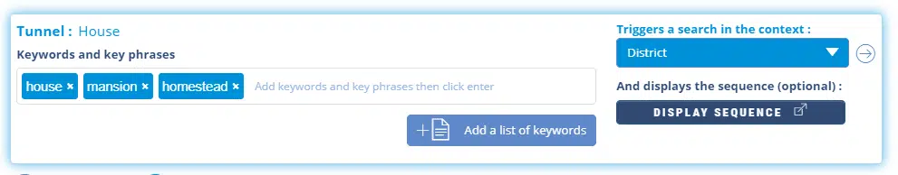 We then create a “House” Tunnel with the corresponding keywords and which will also launch a search in the “District” Context.
