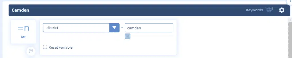 In this context, we create simple AI rules to detect each district, each of which will refer to sequences in which we will store the name of the district in the variable “ district”.
