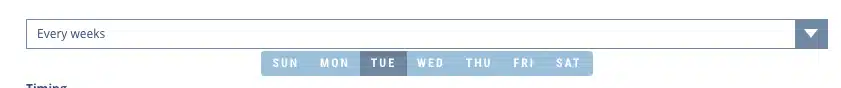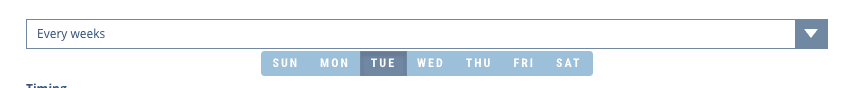 This list gives you the choice of running the notification daily or weekly. If you choose all weeks, a list of days will appear allowing you to choose the launch days by clicking on them. In the example below, we have chosen to launch the notification every Friday and Sunday: