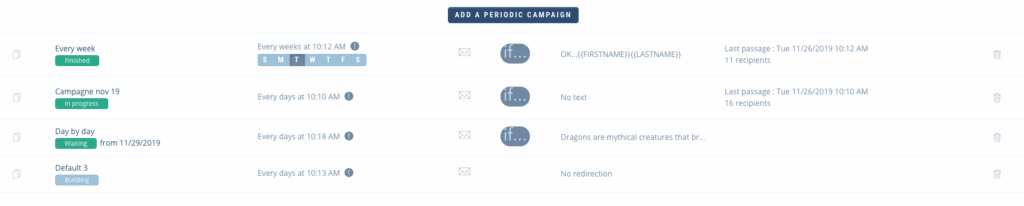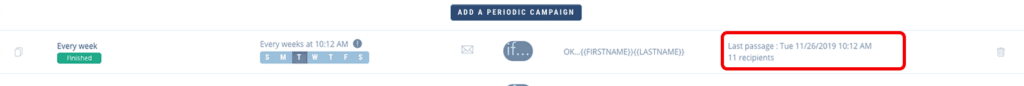 In this list, you can see the date of the last passage and its associated number of recipients.