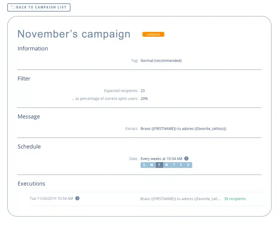 To see a list of all the executions, click on a campaign and you will have access to the complete summary.