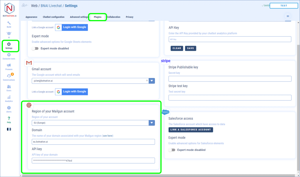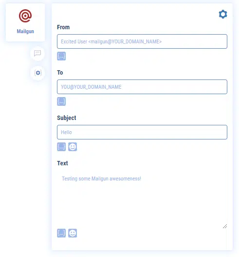 To associate your Mailgun account with your bot you must fill in 3 parameters: