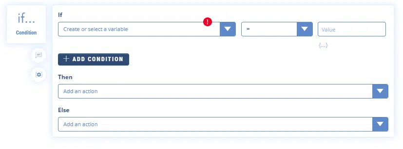If Conditions are essential to make your chatbot dynamic. You will use them regularly to guide users according to their choices and especially according to the data captured in variables when they answer. The If Conditions will also provide logic to your chatbot so that it makes the right decisions.