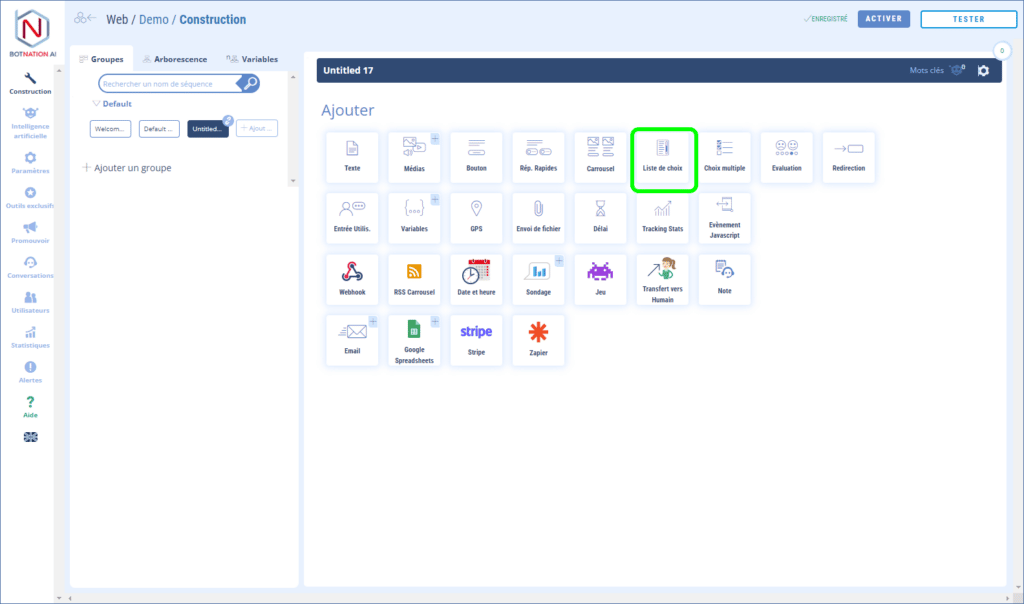 - soit par un accès direct dans l’interface de construction Botnation parmi les fonctionnalités: