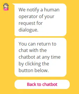 No complicated settings. As soon as a user is exposed to this feature the bot administrator and possibly other people (added in “advanced settings”) receive an email notification and a link to access the conversation. At this point, your chatbot is paused. You can customize the messenger displayed to the user and the number of hours to respond, after this time the chatbot takes over. Of course, you can extend this period as you wish.