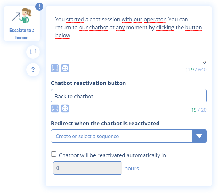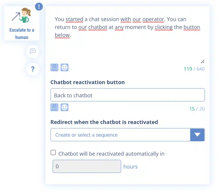 Native escalation module integrated in your Chatbot
