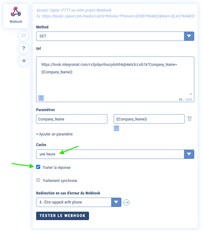 Si vous activez un cache d’une heure, l’appel à votre webhook n’est alors envoyé qu’une fois par heure maximum alors que vous avez certainement besoin de recevoir toutes les informations à chaque appel.
