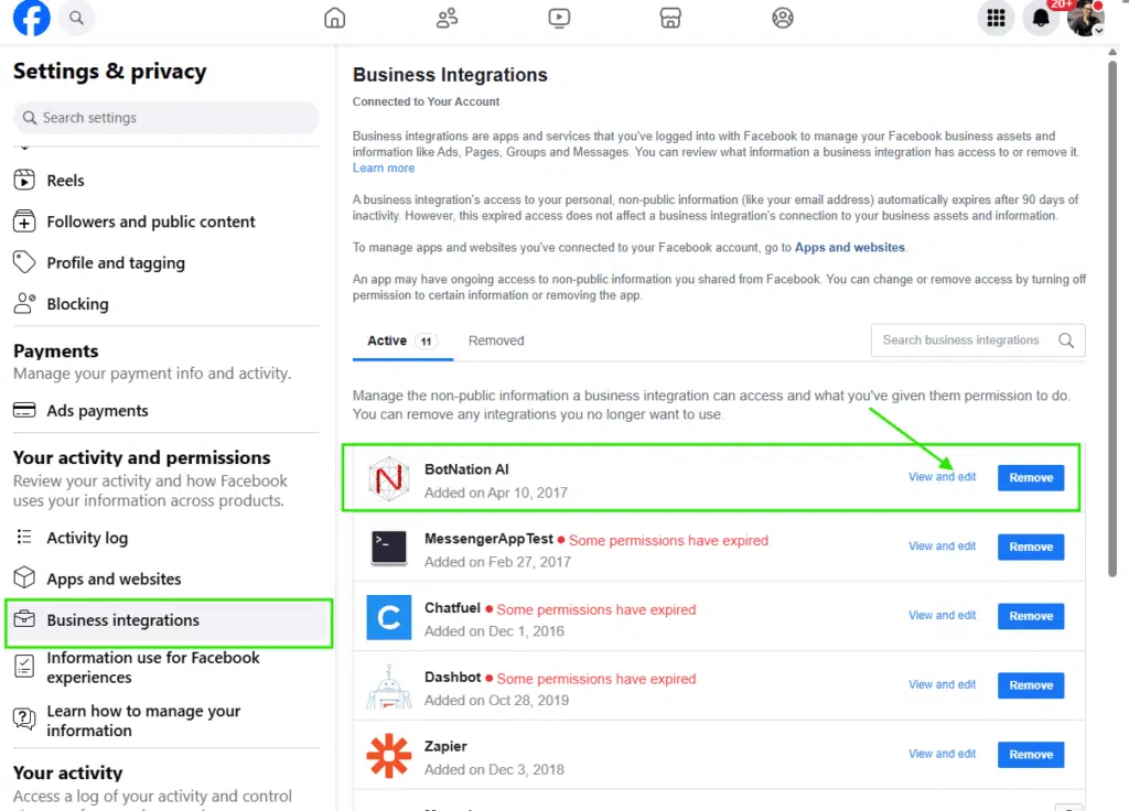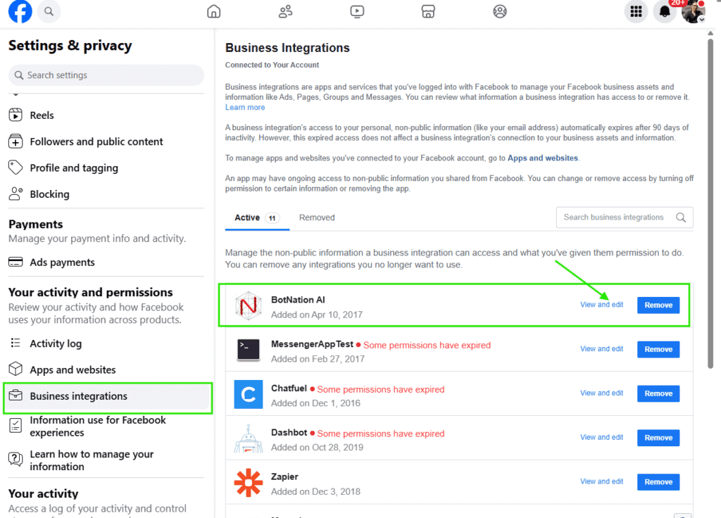 Before launching on BOTNATION AI you may have tested on other chatbot creation platforms. At that time you also gave them permission to reply in Facebook Messenger.