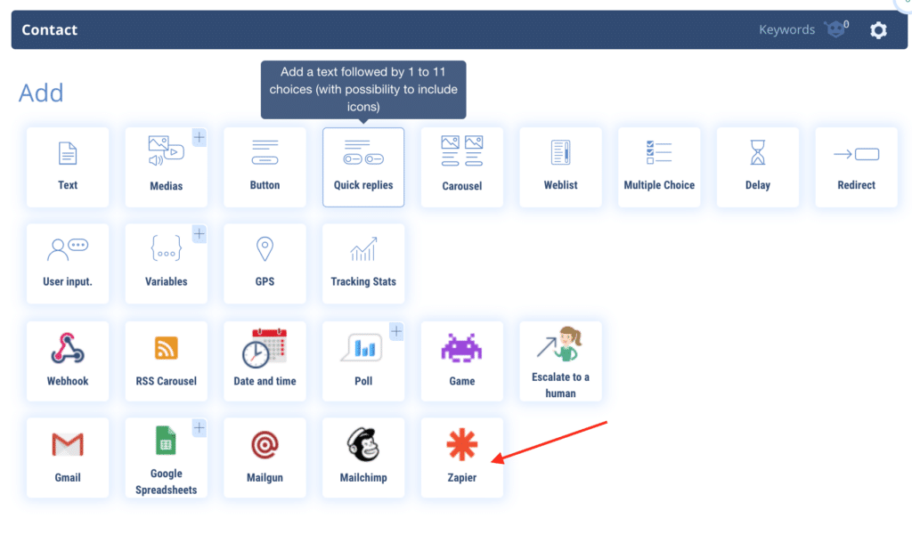 To activate it, select the Zapier feature on the Botnation interface