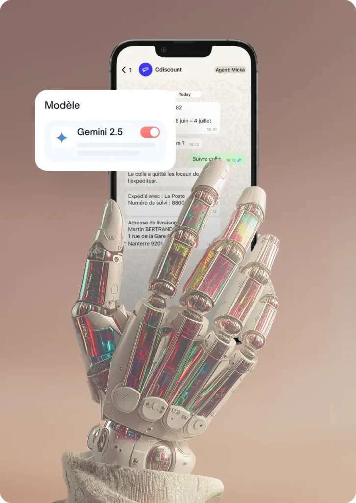 Nous combinons plusieurs briques technologiques : IA générative, NLP, scénarios no-code, règles métier et intégrations. L’objectif : une expérience fluide, fiable et maîtrisée.