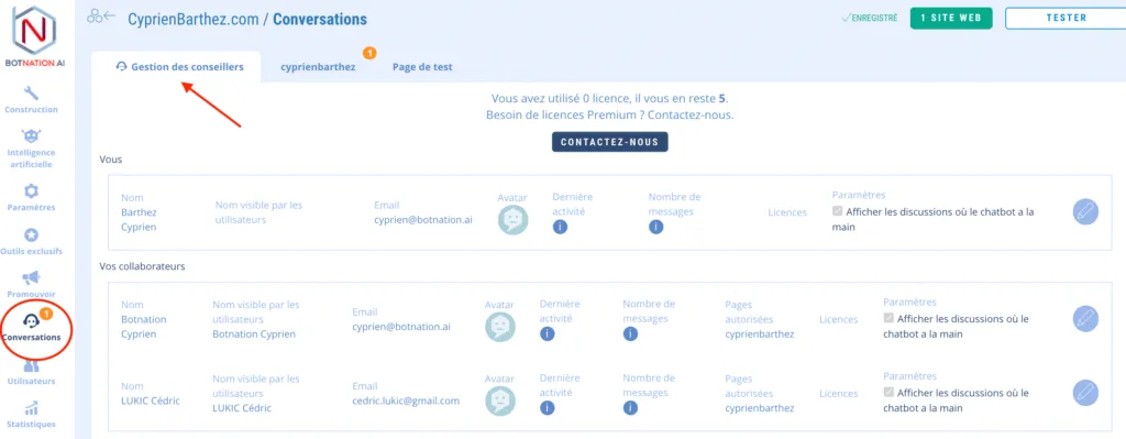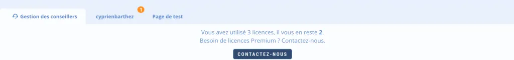 Dans un premier temps, pour accéder à cela, nous devons vous délivrer des licences. Il vous faut une licence par conseiller. Depuis mars 2022, ces licences sont accessibles via n’importe quel forfait Botnation, exception faite des anciennes offres Expert / Elite / Elite+. Si vous êtes encore abonné à ces dernières, vous devrez vous mettre à jour.