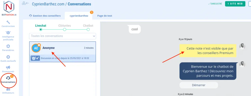 Nous les avons écoutés et nous avons déployé une version avancée de cette fonctionnalité. Vous avez dû le constater en vous rendant dans l’onglet « Conversations » de votre chatbot 😉