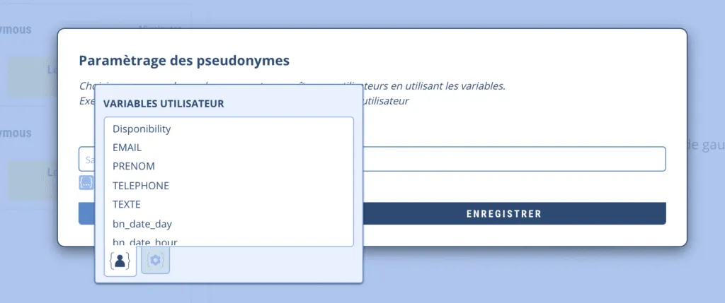 Ensuite, cliquez sur la petite roue crantée, visible sur la capture ci-dessus. Cela vous affichera le paramétrage des pseudonymes :