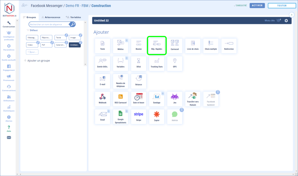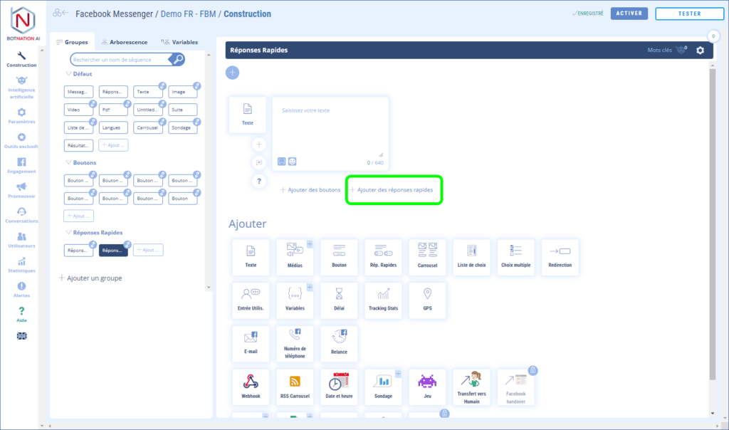 Les Réponses Rapides dans votre chatbot Messenger.
