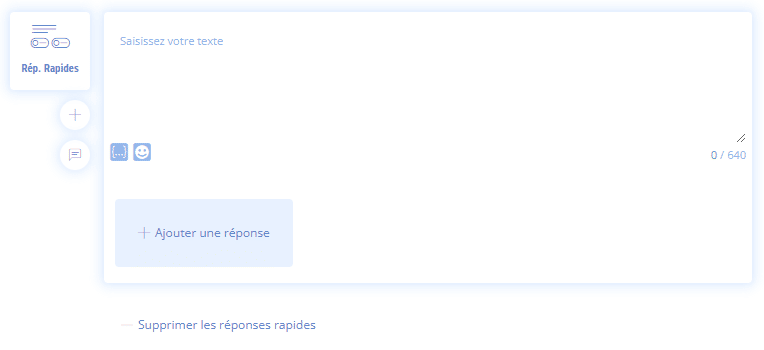La première consiste à ajouter directement cette fonctionnalité en cliquant sur l’icône « Réponses Rapides » qui se trouve parmi les autres fonctionnalités. (Voir ci-dessous).