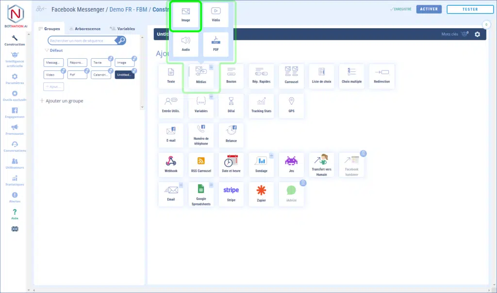 Parmi les fonctionnalités de construction, cliquez sur « Médias » puis, dans le menu qui s’ouvre, cliquez sur « Image ».