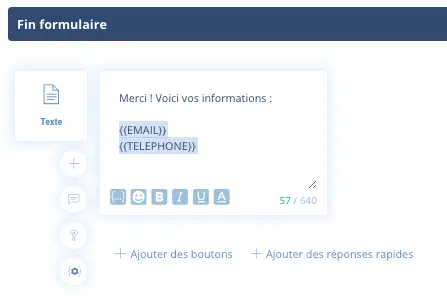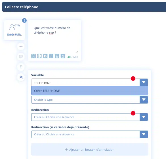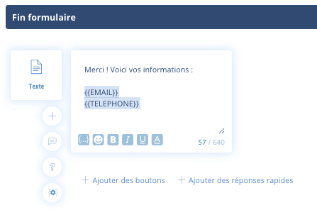 Même logique, choisissez la variable, par exemple {{TELEPHONE}}.