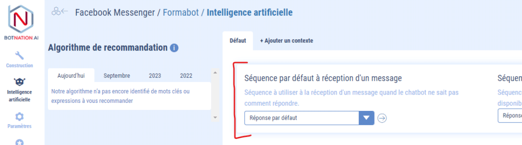 Choisir une séquence pour quelle devienne la séquence par défaut de votre chatbot.