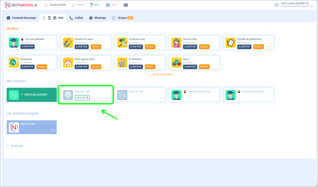 1 – Cliquez sur le chatbot que vous souhaitez désactiver