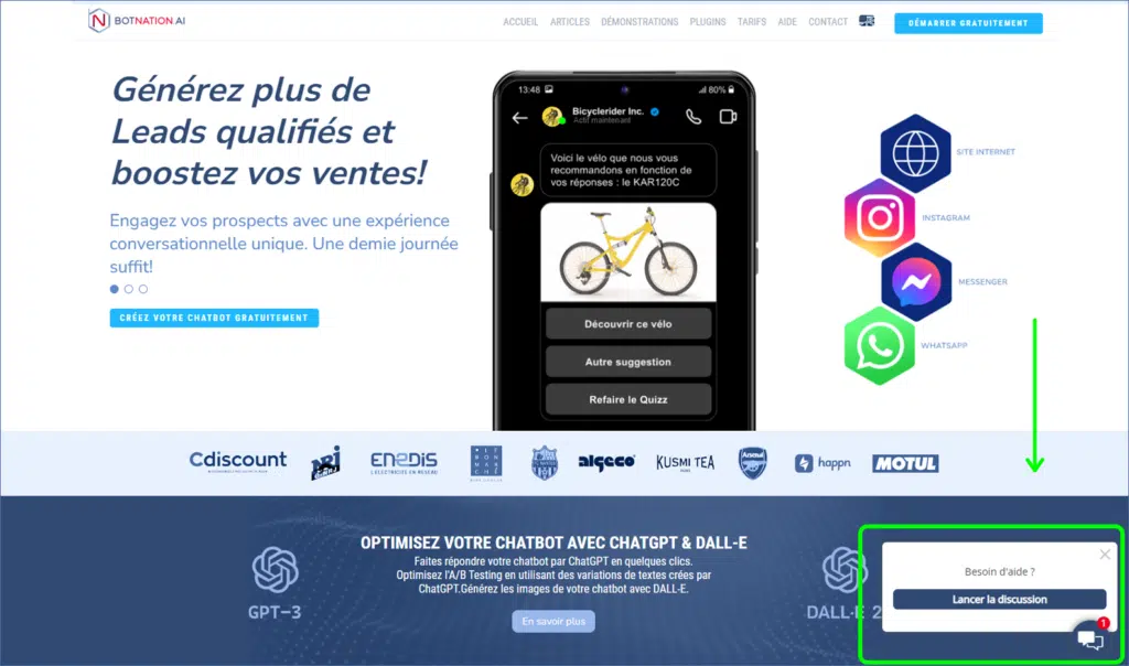 Nous sommes là pour vous aider ! Cependant nous n’assurons pas d’assistance technique par téléphone pour les utilisateurs d’offres gratuites. Nous vous recommandons donc d’utiliser les articles de l’aide en ligne de Botnation.