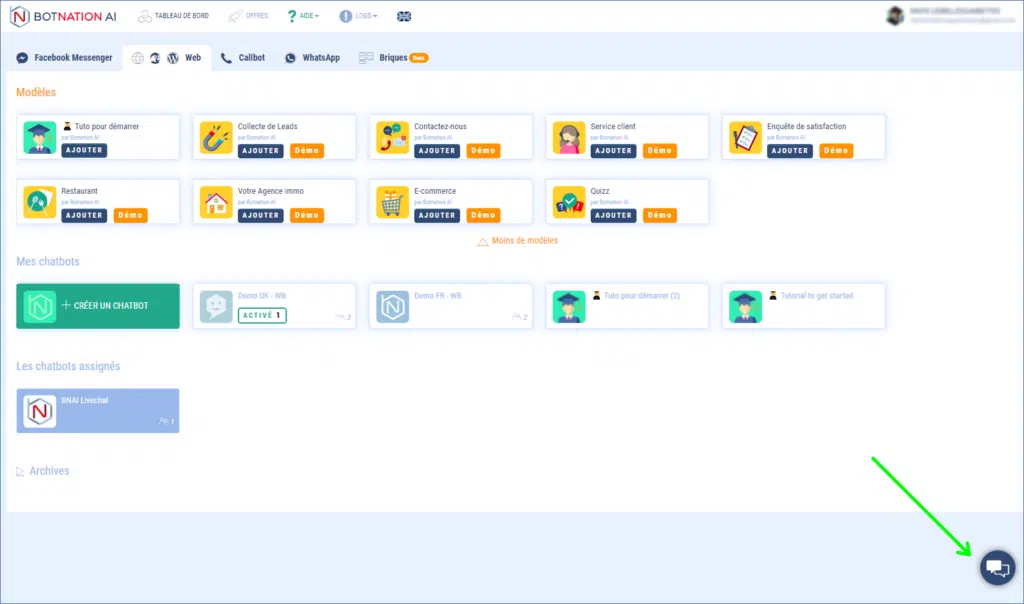 Le moyen le plus simple de contacter Botnation est notre Chatbot.