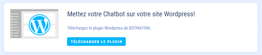 Nous avons développé un plugin WordPress vous permettant d’ajouter très simplement notre Chatbot messenger sur votre site WordPress. Suivez les instructions du plugin pour l’installer.