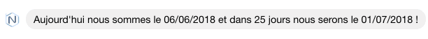 Si vous utilisez la variable de cette façon : {{bn_date_TodayYMDT}}, le chatbot affichera la date format « informatique » (base de données) + heure : « 2020/06/27 21:10 »
