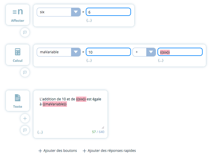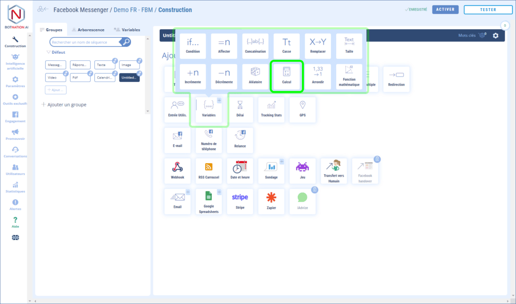 Parmi les fonctionnalités de construction, cliquez sur « Variables » puis, dans le menu qui s’ouvre, cliquez sur « Calcul ».