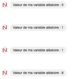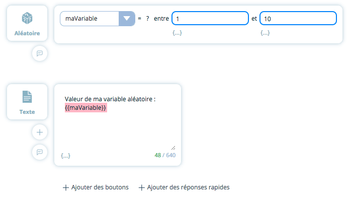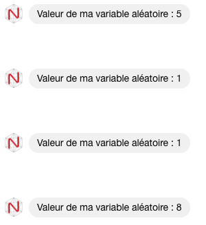A chaque fois que le bot exécutera cette fonctionnalité, la variable « maVariable » aura une valeur aléatoire comprise en 1 et 10 :