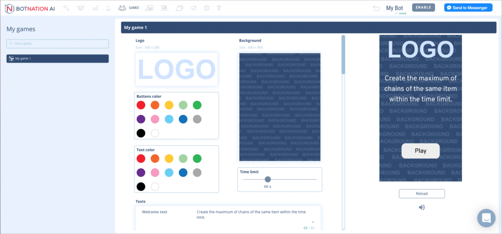 BOTNATION AI vous propose plusieurs modèles de jeux que vous pouvez intégrer dans votre chatbot. Nous allons voir, dans cet article, comment les ajouter et les personnaliser selon vos envies.
